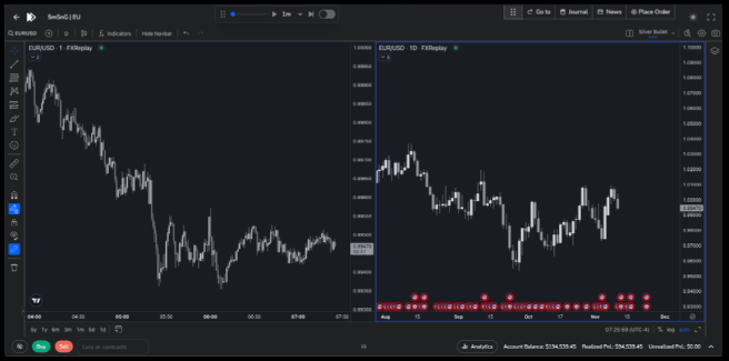 FX Replay is a market replay and backtesting platform designed to help traders practice and analyze strategies using historical price data. It allows users to simulate real trading conditions by replaying past market sessions, placing trades, and reviewing performance without...